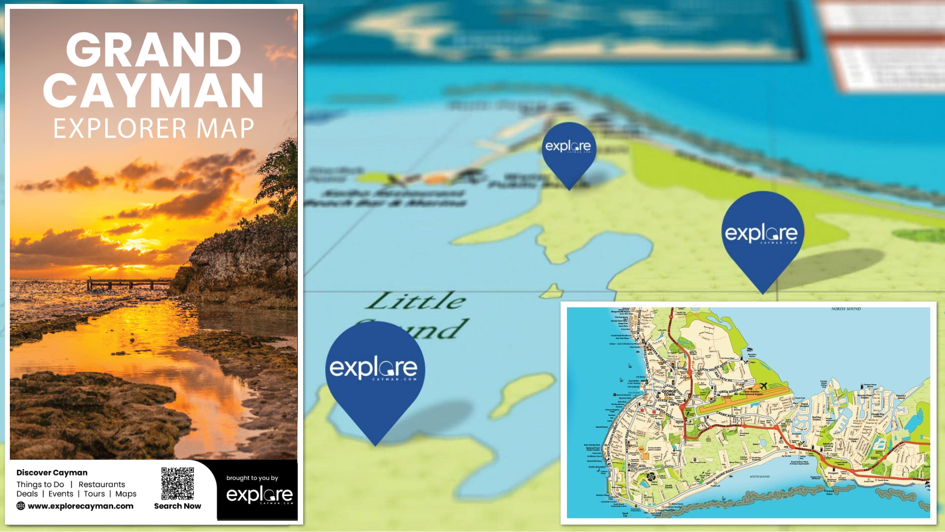 Take home the best, FREE map for navigating Grand Cayman's roads and top attractions, the Cayman Explorer Map, found at magazine stands, hotels, condos and car rental agencies across the Island, to name but a few. Featuring a comprehensive key system, so you can find everything with ease, you can even pick up your copy from the airport arrivals hall as soon as you land!